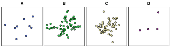 In the initial map it is very difficult to separate out each individual point pattern from the others, and it is even difficult to tell the prevalence of each point pattern in the map including all elements. The small multiple plots allow you to visualize each individual pattern, and then after evaluating each pattern on their own make comparisons between patterns.