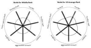 In this example of comparing groups, I utilize dots instead of the bar rug, as I believe it provides more contrast between the two distributions. Also note in general I have not superimposed other summary statistics (some of the bean plots have quartile lines super-imposed). You could do this, but it gets a bit busy.